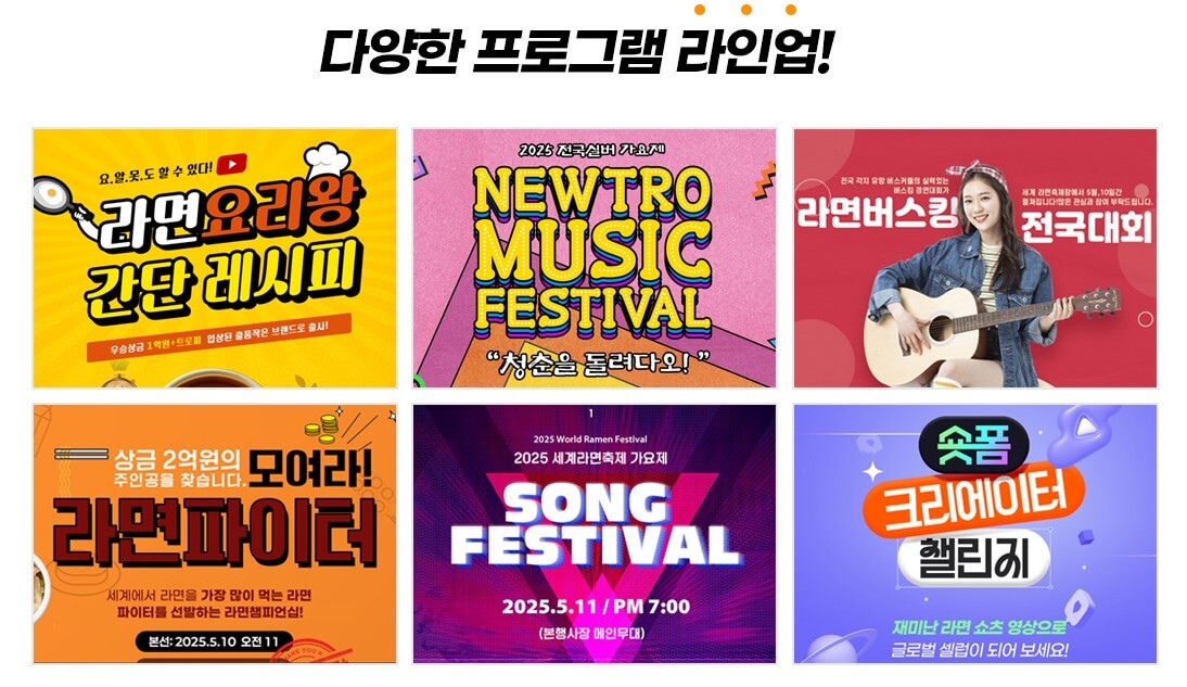 2025년 5월 2일부터 11일까지, 부산 오시리아 관광단지에서 개최되는 세계라면축제는 지구촌 환경개선과 빈곤퇴치를 위한 글로벌 식문화 축제입니다. 다양한 나라의 라면을 체험하고, 맛보며, 의미 있는 기부까지 함께할 수 있는 특별한 자리입니다.