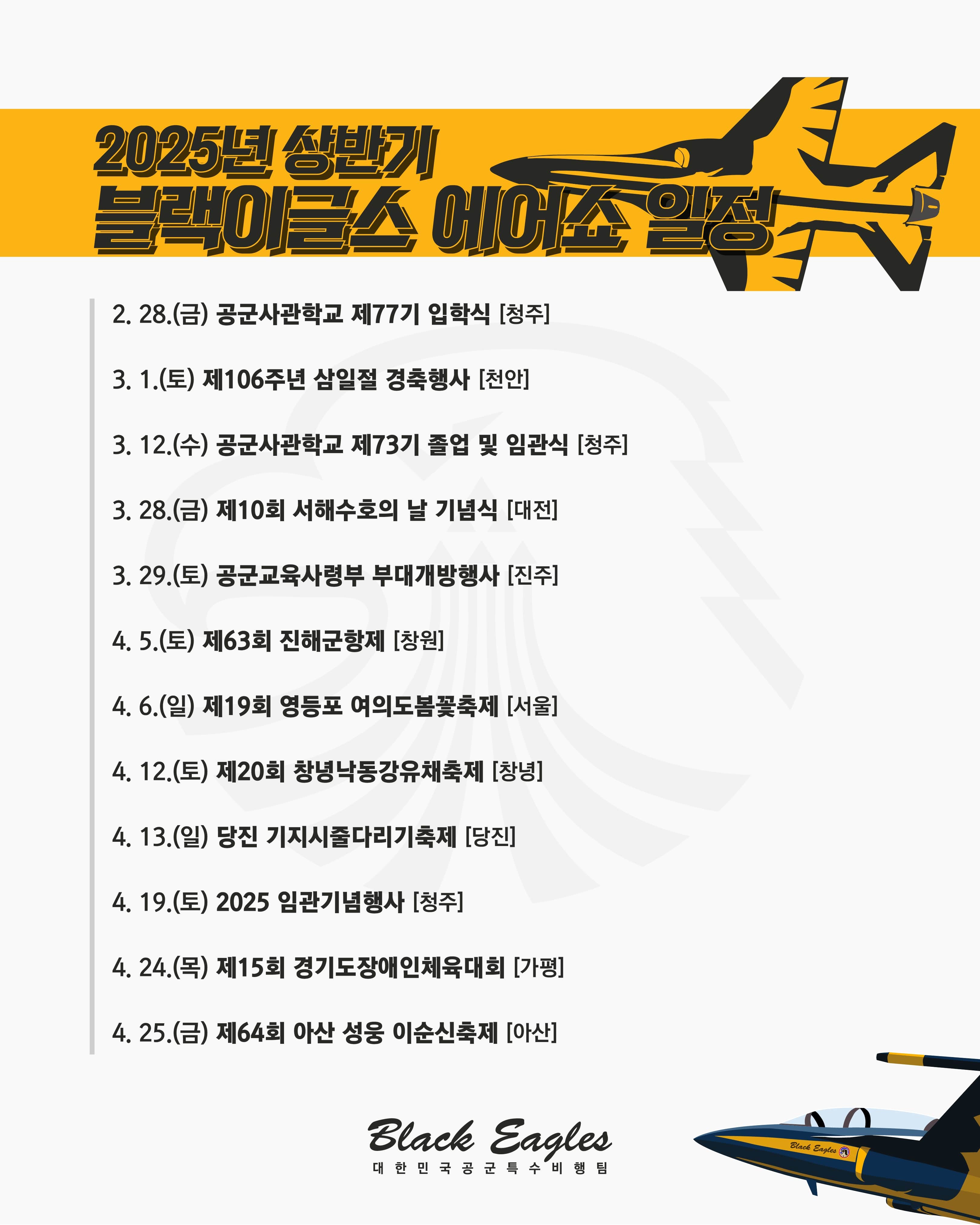 2025년 상반기, 전국을 누비며 대한민국의 하늘을 수놓을 블랙이글스!